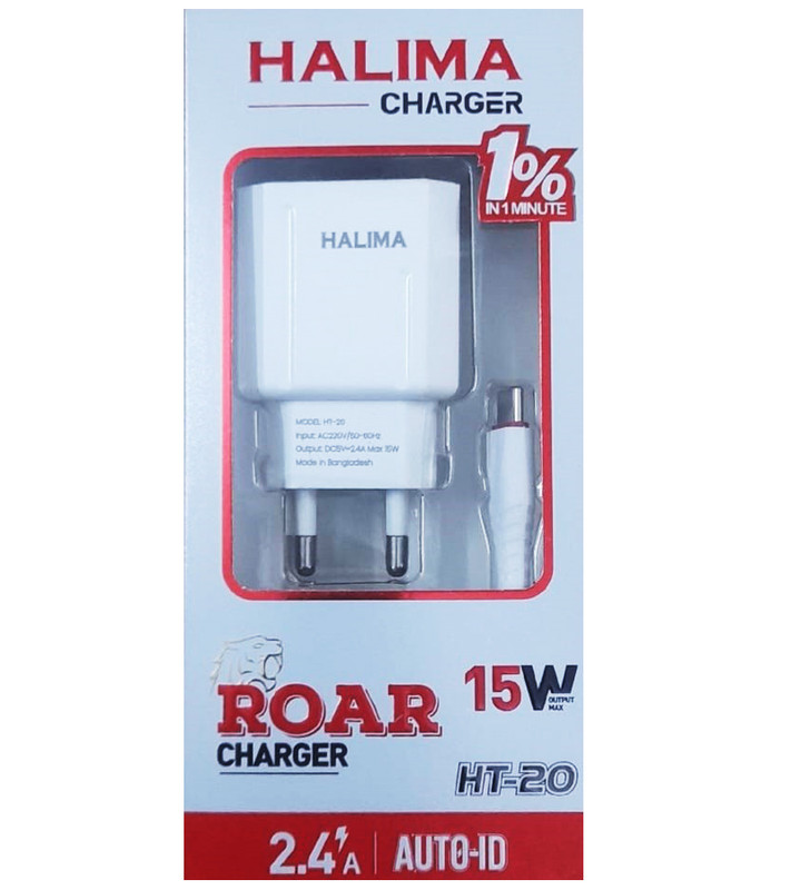 HALIMA ROAR 15W দ্রুত চার্জার HT-20 - মাইক্রো ইউএসবি কেবল